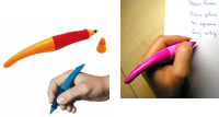 La curvatura della penna fa si che non si oscuri lo scrivere e si evitino le sbavature. Il campo visivo migliora grazie ad una corretta impugnatura così come lo sforzo se si impara a tenere la penna nel punto corretto e soprattutto la giusta pressione (la mano si troverà al di sotto della linea di scrittura formando un lieve angolo). La penna ha i pennini posizionati per far fluire facilmente l’inchiostro.